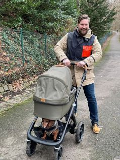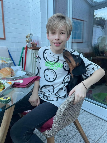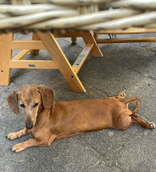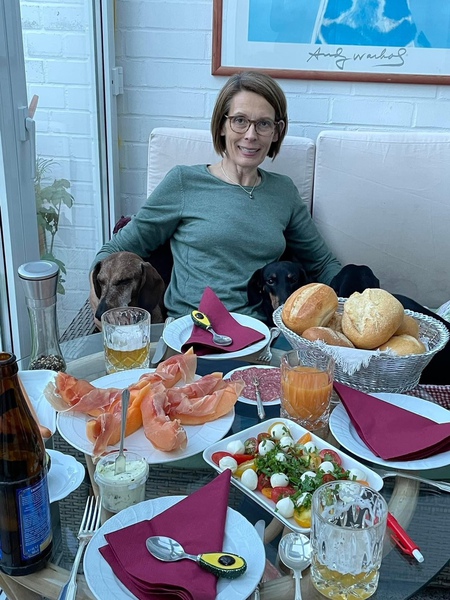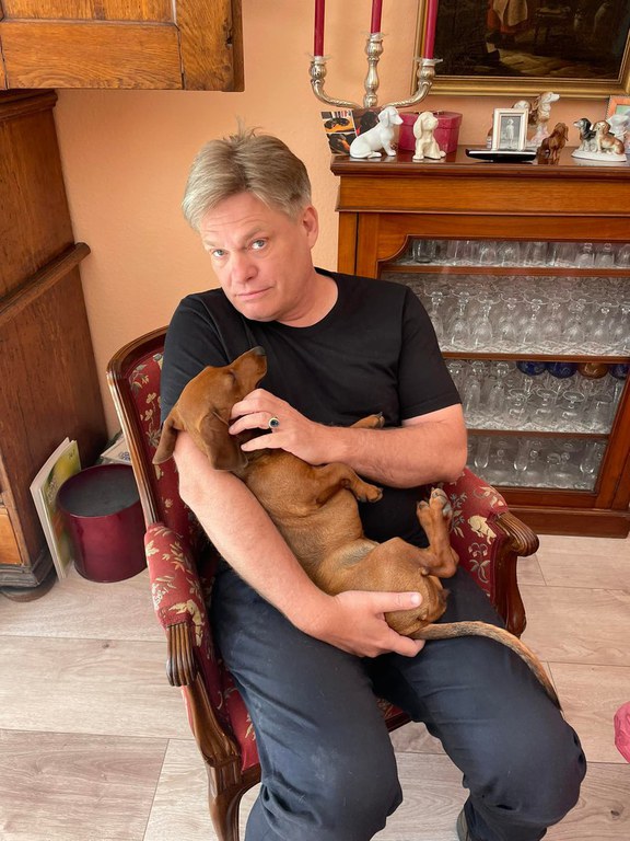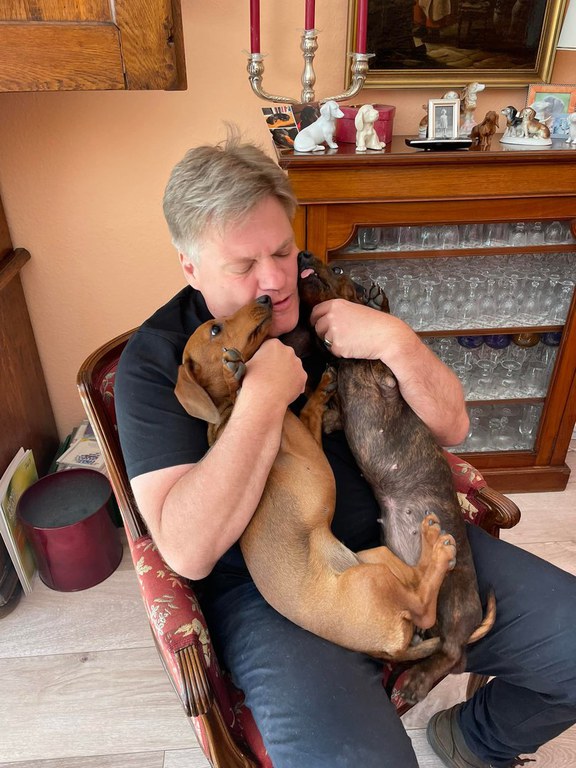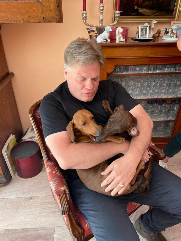 Unverhoffter Besuch aus Thailand war zum Frühstück auf dem Brüser Berg. Wir Teckel waren außer Rand und Band und die beiden Jüngsten Fleur und Gaulina haben sich ins Herz von Oliver geschlichen