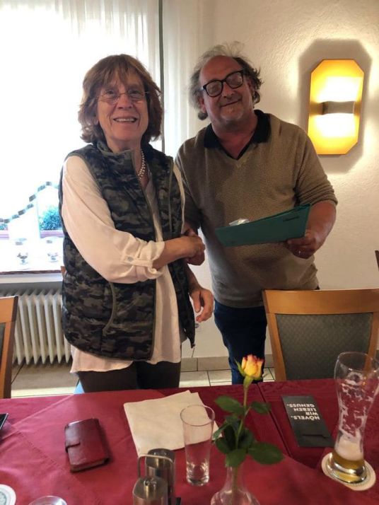 Bei einem kleinen Abendessen wurde Ingrid und ihrem Sohn Alexander vom Vorsitzenden der Gruppe Unna