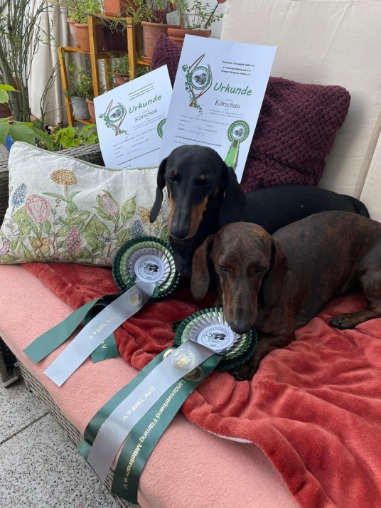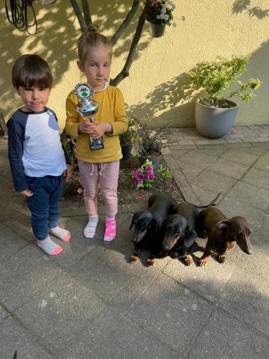 Hunde und Menschen hatten viel Spass. Alle haben sich hervorragend entwickelt und sind bildschöne Dackelteenager geworden. Meine Tochter Engels Tabea und Xavit-Leander vom Rehsprung können stolz auf ihre wunderbaren Kinder sein!
