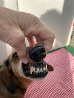 Mit 12 Jahren haben wir ein vollständiges Gebiss! Wir müssen es mal so sagen: Es lohnt sich die Zähne zu putzen und jedes Jahr eine Zahnreinigung beim Tierarzt machen zu lassen! Danke Ingrid, dass du das mit uns machst.