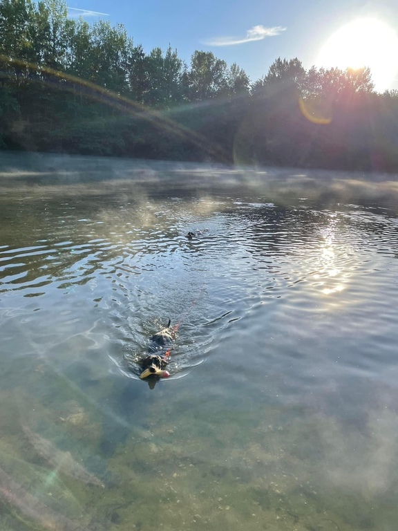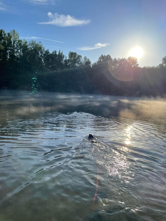 Früh morgens um 6:00 Uhr am Weiher - glückliche Engels Teckel von der Bonner Höhe