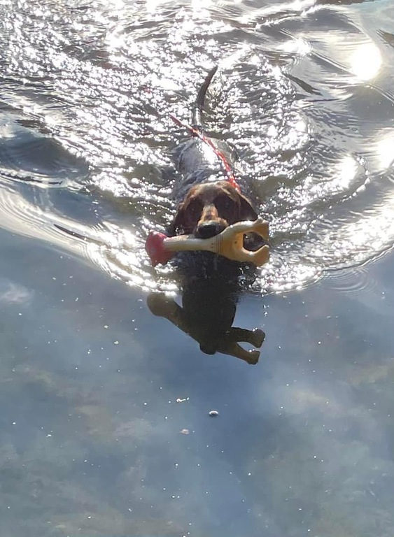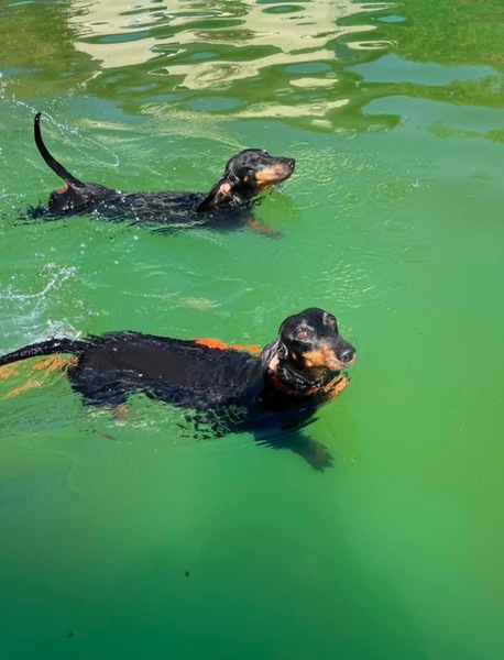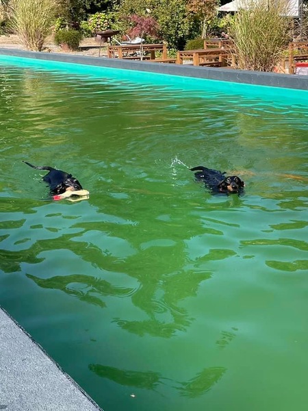Das „Hundeschwimmbad“ ist der Hit für uns Engels Teckel. Selbst meine Schwester Piccolina ist sehr angetan und dreht ihre Runden. Meine Tochter Bluette-Engel und meine Enkelin Fleur-Engel erholen sich von dem sehr aufregenden und ereignisreichen Wochenende in Dreetz . Am liebsten würden sie immer dort bleiben. Ich sehe das ganz gelassen und bin glücklich meinem Plastikhuhn hinterherzuschwimmen Ingrid denkt gerne an dieses Wochenende zurück - ein Highlight für die Teckel und sie!