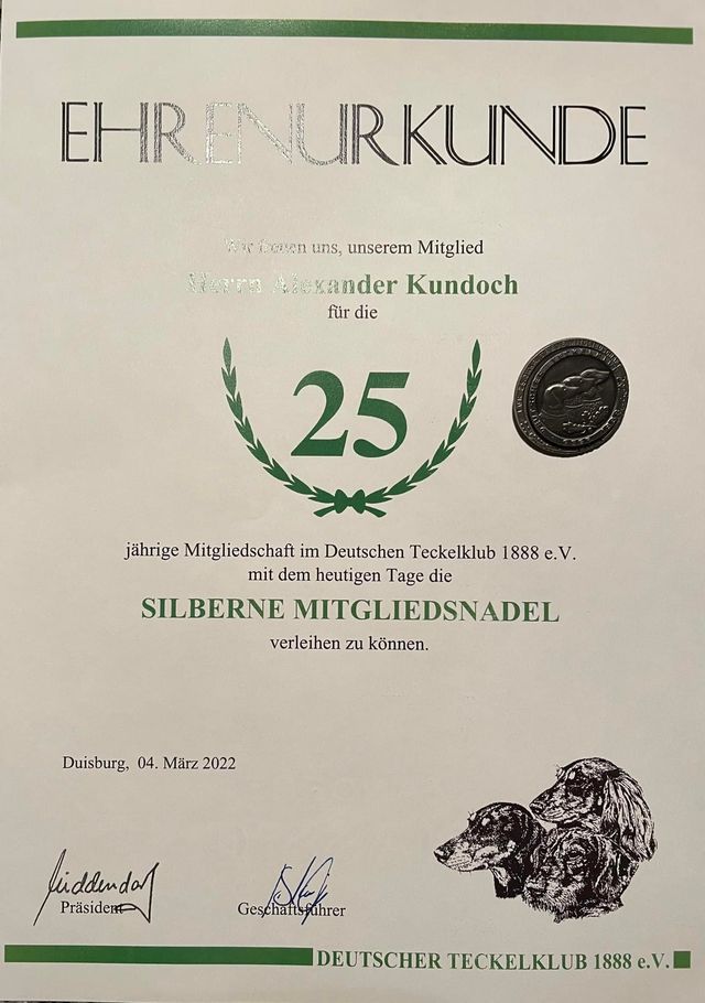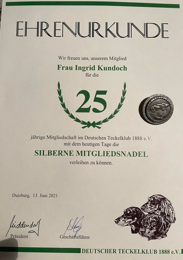 Ein Vierteljahrhundert Mitglied im Deutschen Teckelclub.