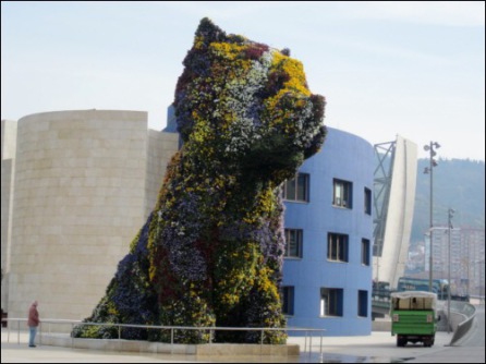 Nur leider ist er viel zu groß, steht vor dem Guggenheim- Museum in Bilbao und ist mit Blumen bepflanzt. Bin ich froh, dass sie diesen Riesenkerl nicht angeschleppt hat.