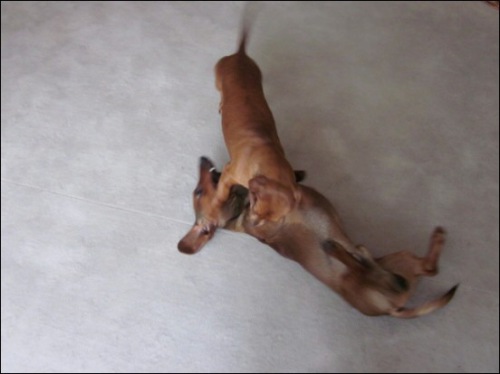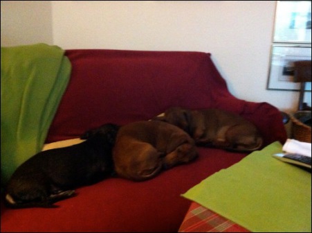 und wir mußten brav in unseren Boxen liegen, es war fast eine Zumutung für uns Dackel.
