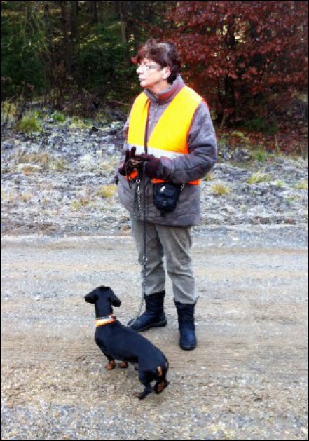 Am 25. August war dann unser großer Tag, Piccolina und ich waren zur Schweißprüfung bei der Gruppe vom Radevormwald angemeldet und Brigitte Engel unsere Führerin. Zwei weitere Dackel waren gemeldet.