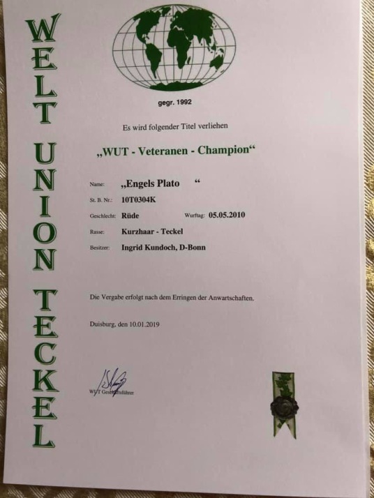 Aus dem 4. Wurf mit Isis aus Dörnchen ist Platos Sohn Engels Elton Jones sehr erfolgreich. Er hat den CZJCh und mehrere jagdliche Prüfungen. Er ist z.Zt. der gefragteste Zuchtrüde in Tschechien .