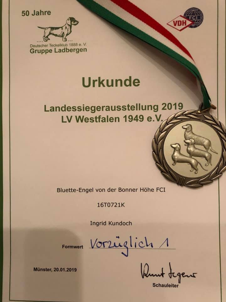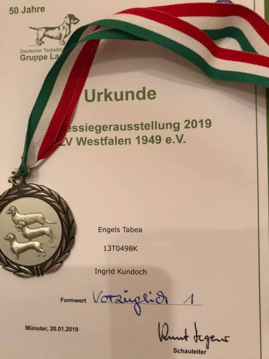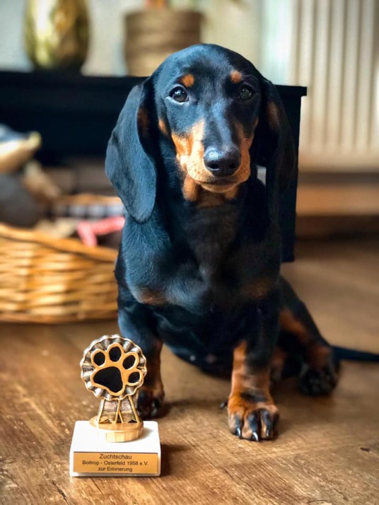 Danke an Esther Christina Filarsky, dass sie unserer Kleinen ein so liebevolles Zuhause gibt und so viel Spaß hatte unser Hundekind vorzuführen. Wir Engels Teckel aus Bonn gratulieren zu dem ersten