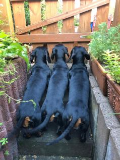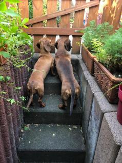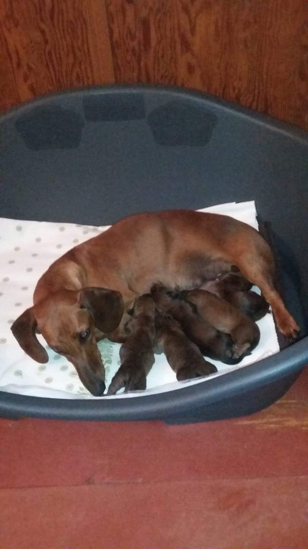 Das Leben normalisiert sich wieder bei den Engels Teckeln. Meine Enkelin Bluette-Engel hat ihre Kinder in die aufregende Welt der Teckel hinausgeschickt zu ganz