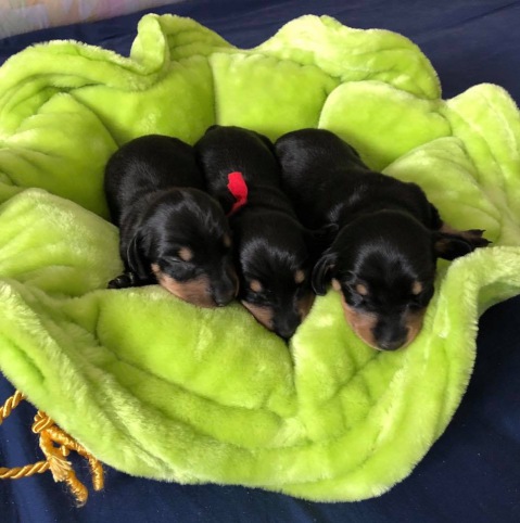 Ich bin stolz auf meine Enkelkinder, die heute ihren ersten Geburtstag feiern. Das Jahr verging irgendwie wie im Fluge und aus den kleinen Dackelkindern sind bildschöne junge Teckel geworden. Mama der Schwarz-roten sind meine Tochter Engels Tabea und