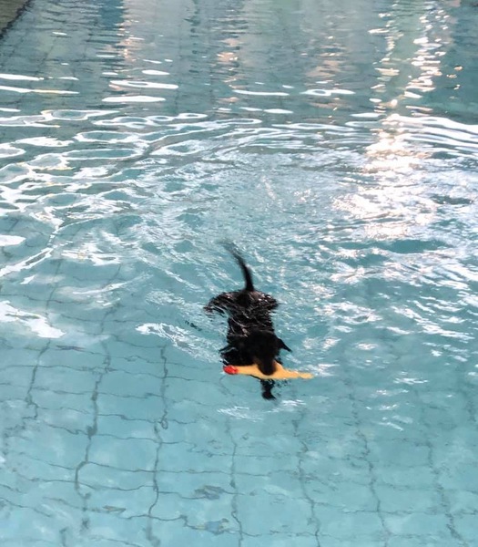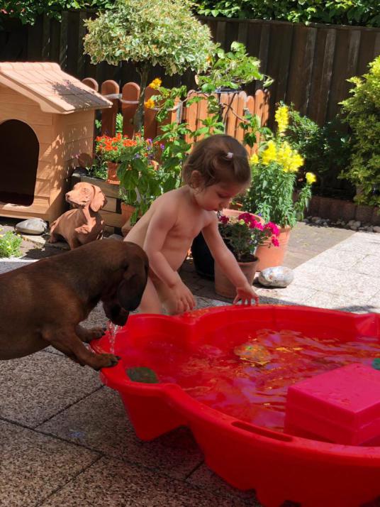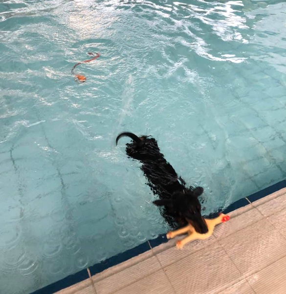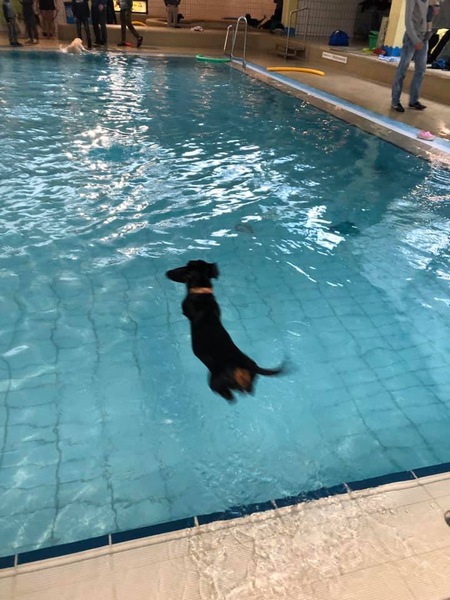 Unsere Wasserratte Engels Leola hat die Badesaison in der DTK Gruppe Dortmund eröffnet. Immer dasselbe Szenario: große Aufregung und „Geschrei“ und dann mit Schwung rein ins Wasser.