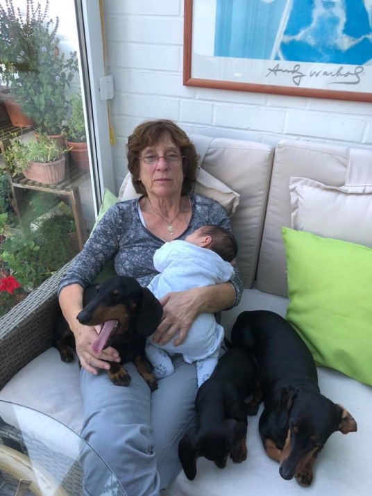 Familienidylle bei den Engels Teckeln von der Bonner Höhe. Meine Tochter, Engels Leola, will immer in der Nähe unseres neuesten Familienmitglieds, Ingrids Enkelsohn, sein. Babys - egal ob Mensch oder Teckel - sind der Hit!