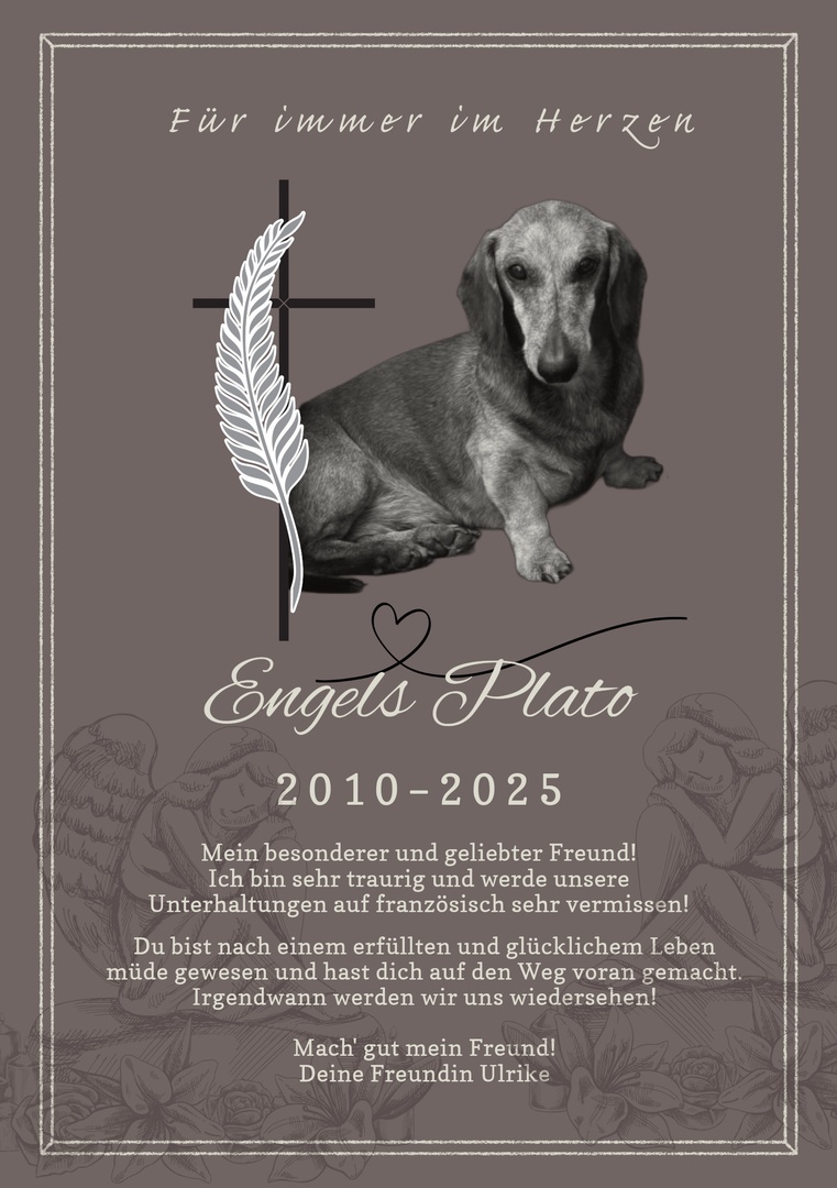 An meinen wunderbaren Freund Plato, ich werde dich nie vergessen;