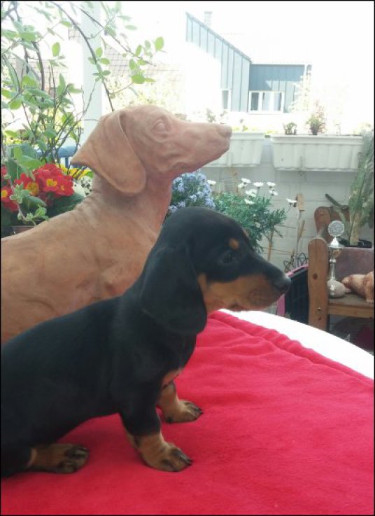 Unsere Welpen sind jetzt 7 Wochen alt und können ab nächste Woche in ihr neues Zuhause einziehen. Inzwischen haben wir auch Namen für die Kleinen ausgesucht , die Hündin heißt Aurora und die Rüden Ares, Agilo und Achill.