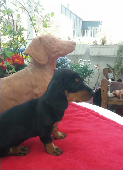 Unseren Hundebabys geht es ausgezeichnet. Tagsüber sind sie jetzt mit ihrer Mama im Wohnzimmer und ich kann sie aus der Ferne beobachten. Diese Krabbeltiere sind mir unheimlich und meine Tochter